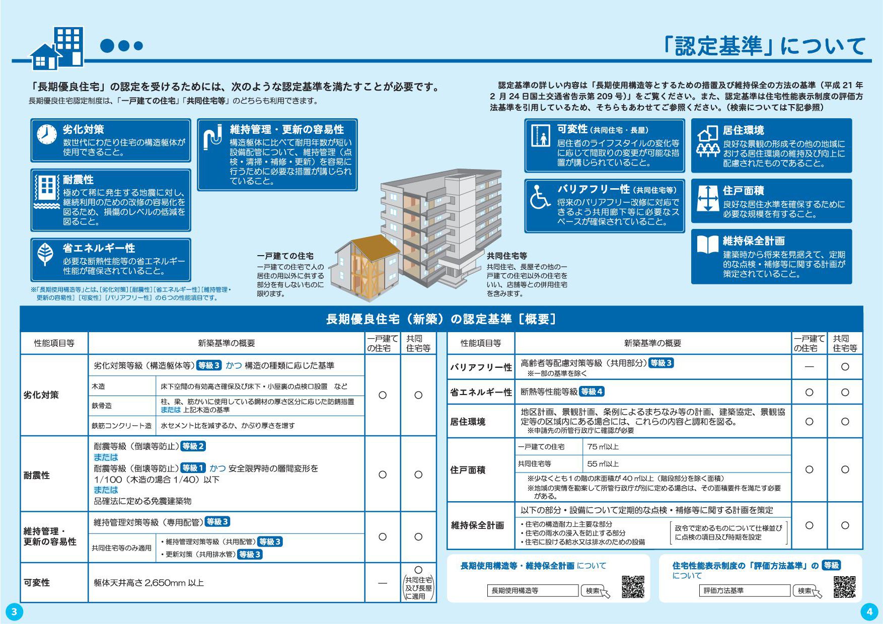 それぞれの項目について、具体的な措置内容が定められています。例えば耐震性では、耐震等級2以上が求められます(耐震等級は1から3まであり、3が耐震性が最も高いことを表します)。