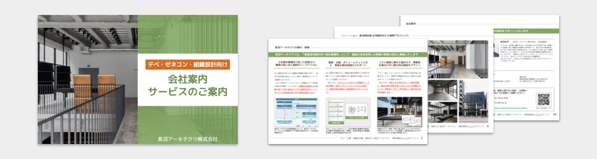 デベロッパー、ゼネコン、組織設計事務所などの建築・不動産のプロ向けに、長沼アーキテクツの会社案内・サービスのご案内の資料ダウンロードをご用意しました。長沼アーキテクツの強みやサポート内容をはじめ、実際に設計事務所と連携したプロジェクト事例をもとに、サービス概要や、各種サポートの費用感などを紹介しています。参考資料、稟議添付資料としてご活用いただけます。 登録いただいたメールアドレスに資料ダウンロードのURLをご案内いたします。